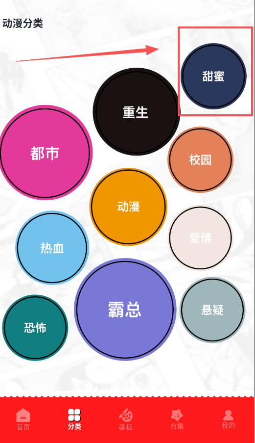 2、如果需要找特定题材,分类页提供了动漫、恐怖、甜蜜等多种标签,还能进二级页面筛选校园、重生等更具体的类型。