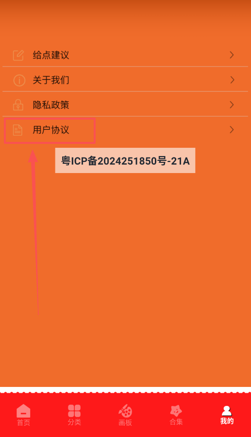 4、别忘了查看关于我们和用户协议,底部有备案信息,这些内容能帮你了解软件背景和使用规范。