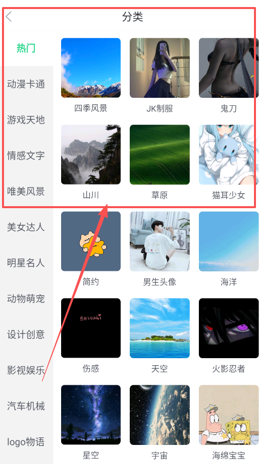 用户在本站下载并打开软件之后可以点击下方的壁纸或者动态壁纸,在上方都可以看到壁纸分类,可以在这些分类里选择自己喜欢的壁纸类型。