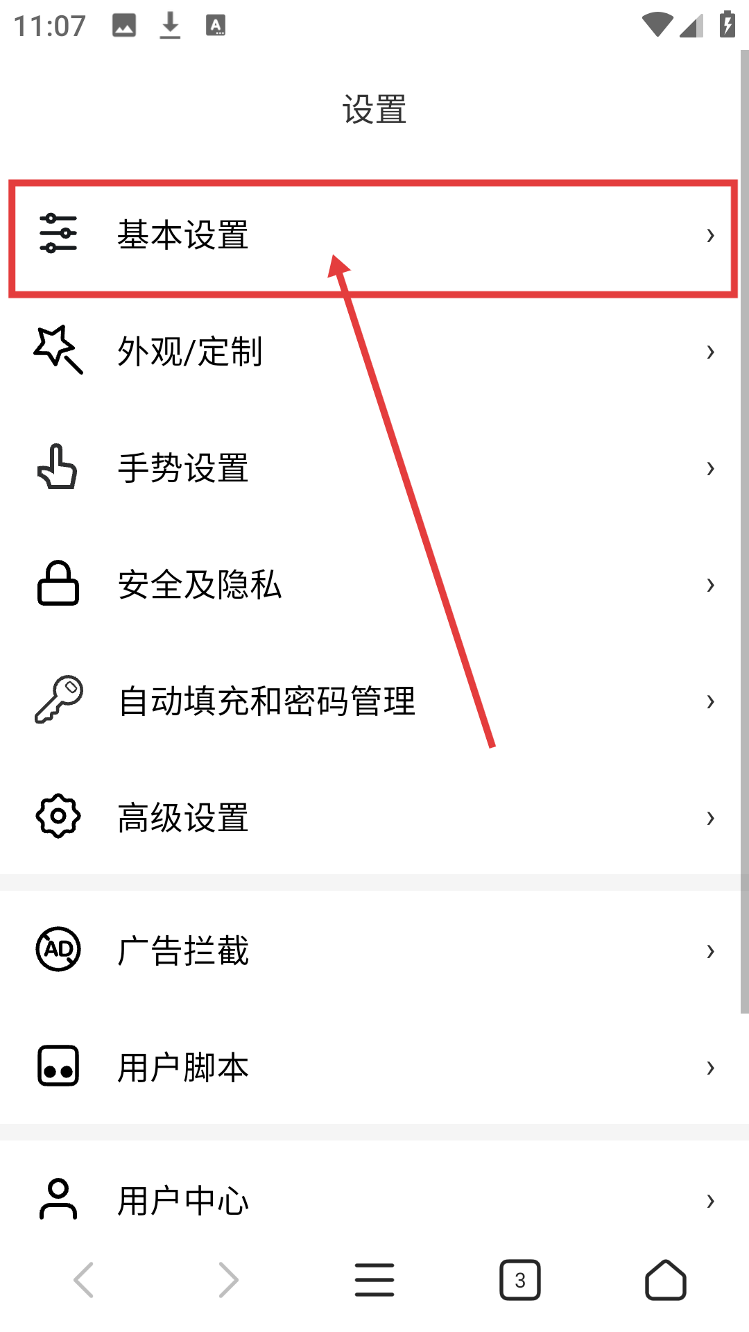 2、在设置界面点击【基本设置】,进入基本设置界面,准备调整基础功能啦。
