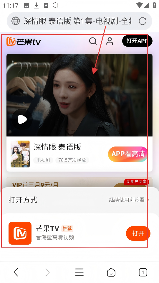 4、点击历史记录里的电视剧相关链接,会进入播放页面,可选择用浏览器或APP播放,提升观看体验啦。