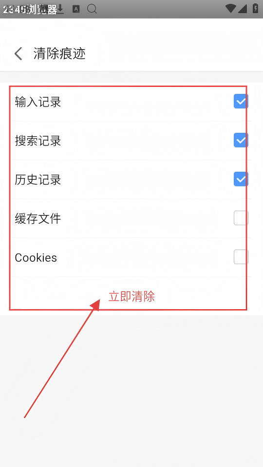 4、进入清除痕迹界面,可选择输入记录、搜索记录等要清除的内容,点击【立即清除】,就能完成清除啦。