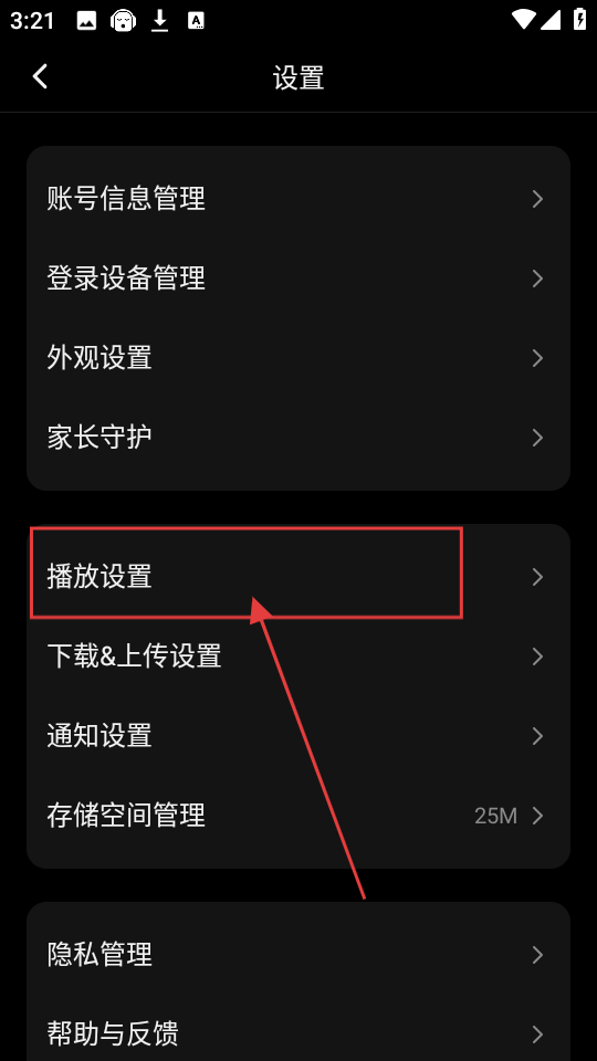 3、在设置页面,找到【播放设置】选项,点击它就能进入播放设置页面,调整播放相关参数啦。