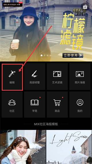 1、在主界面点【编辑】选项,可进入图片编辑页面,开启对图片的美化处理流程啦。