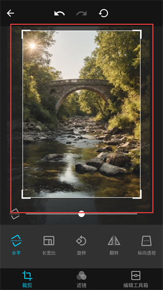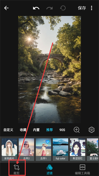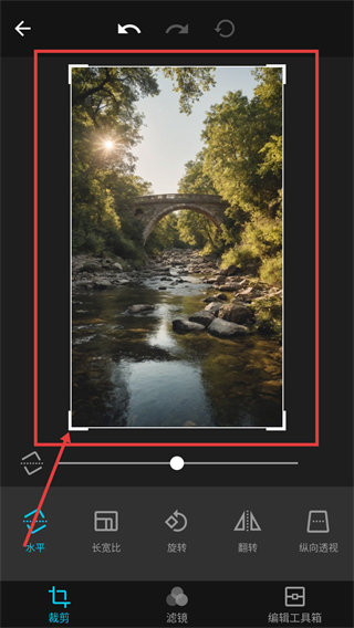 2、进入编辑页后,点底部的【裁剪】按钮,能切换到裁剪功能栏,调整图片的构图比例哦。