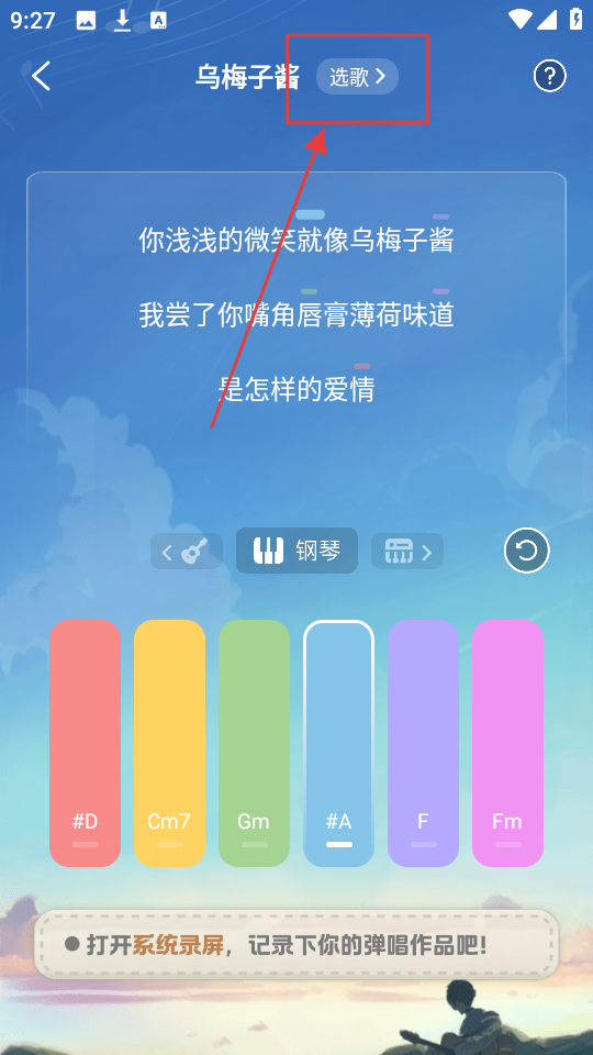3、在还可以选择【趣味弹唱】,在弹唱页面点击【选歌】,就能进入歌曲选择界面,挑选想弹唱的歌曲哦。
