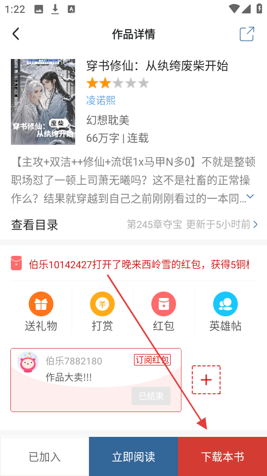 2、进入作品详情页后,点击【下载本书】,可进入下载设置页面,准备下载书籍哦。