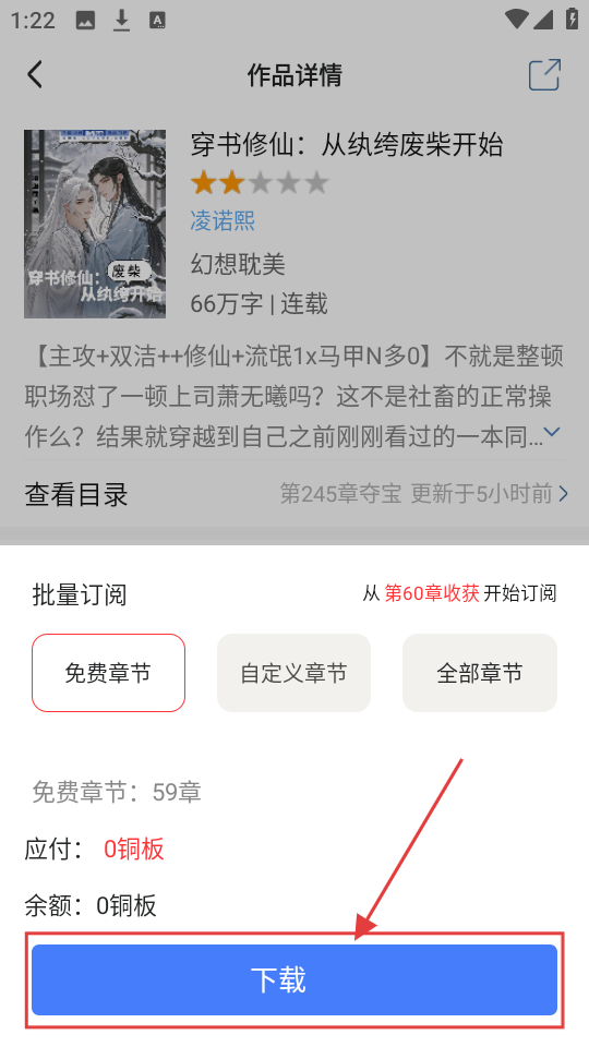 3、在下载设置页面,点击【下载】,可开始下载书籍章节,完成书籍下载操作啦。