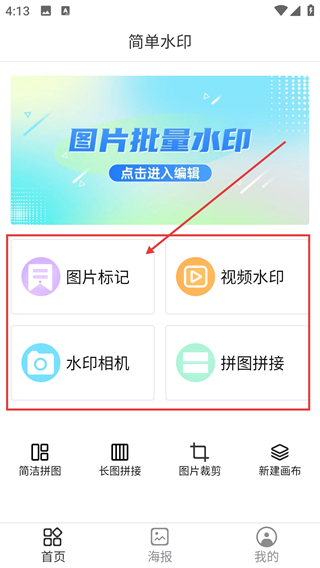 1、简单水印安卓版内提供的首页设计是非常干净整洁,这样会方便大家使用的。