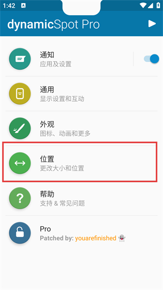 1、进入【dynamicSpot-Pro】主设置页,点击红框标注的【位置】选项,该选项可更改弹窗的大小和位置参数。