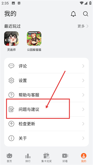 2、进入个人中心后,点击【问题与建议】选项,就能进入反馈页面,提交使用中的问题或建议哦。