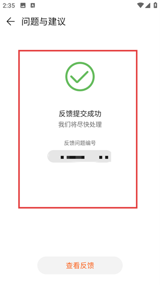 4、提交反馈后会显示【反馈提交成功】的提示,还能获取反馈编号,后续可查看处理进度哦。