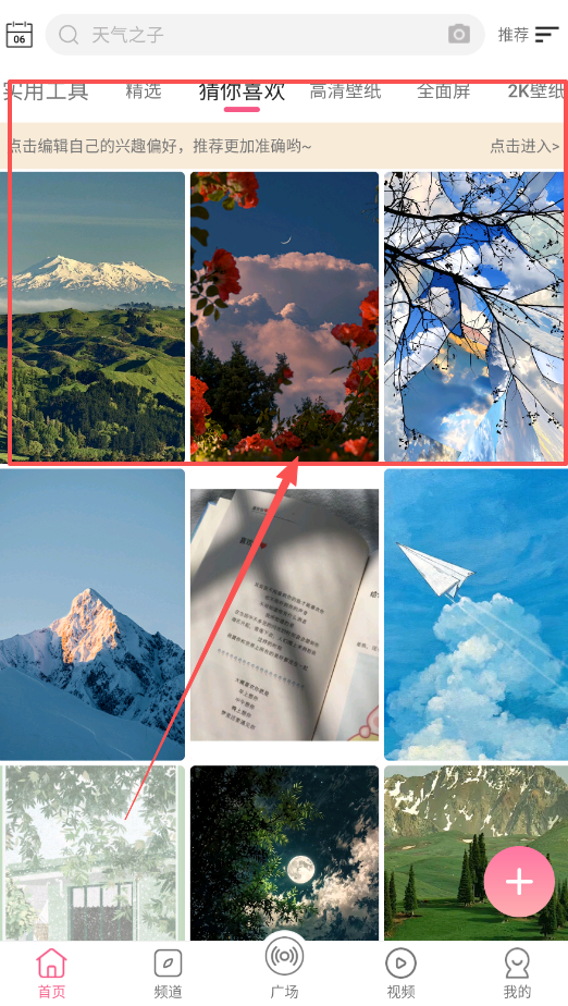 2、在首页的推荐和精选分区,软件会为你推送各种高清和2K壁纸。你可以点击编辑兴趣偏好。