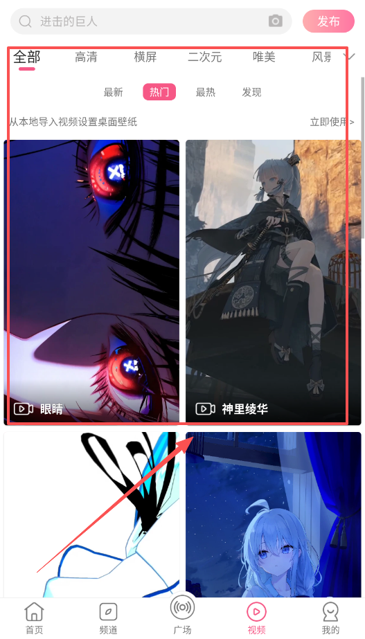 4、想用视频做壁纸的话,可以使用从本地导入视频的功能,你可以按高清、横屏、二次元等标签筛选。