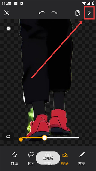 3、调整好抠图区域后,点右上角箭头按钮,就能完成抠图并进入后续的编辑或保存环节啦。