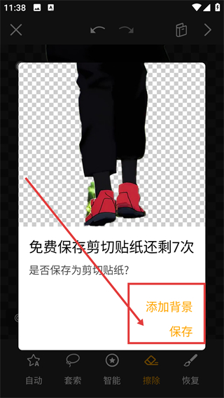 4、抠图完成后会弹出保存提示,点【保存】按钮,就能把抠好的素材存为剪切贴纸方便后续用哦。
