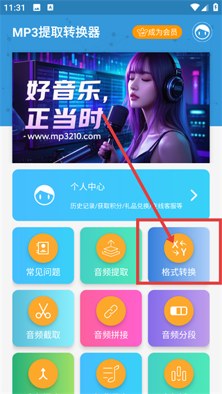1、在MP3提取转换器首页点击【格式转换】选项,就能进入格式转换的操作页面,准备处理音频文件啦。