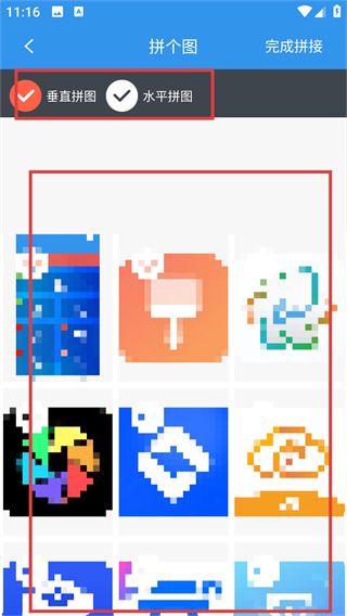 2、可以帮助将同一系列的图片拼接组合成一张长图,方便查看去操作。