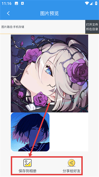 3、拼接完成后进入图片预览页,点击【保存到相册】按钮,就能把拼接好的长图存到手机里啦。