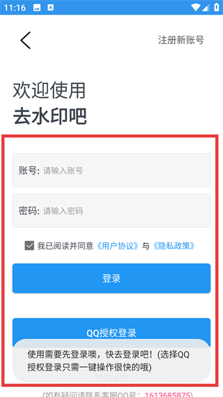 4、使用部分功能需登录,在登录页勾选协议后,可选【QQ授权登录】快速完成账号登录操作哦。