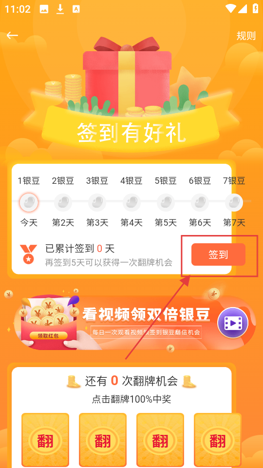 3、在签到页面,点击【签到】,可完成当日签到,领取签到奖励啦。