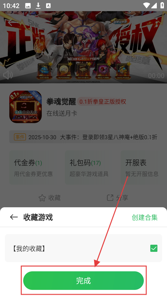 3、收藏游戏时选择【我的收藏】,点【完成】就收藏成功啦,很简单呢。