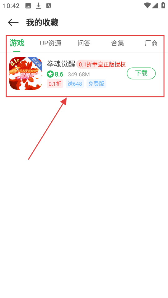 4、我的收藏里能看到【拳魂觉醒】,想玩的时候直接点下载,超方便哦。