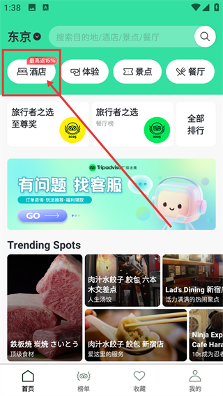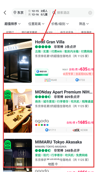 1、在首页点击【酒店】选项,就能进入东京的酒店列表页面,查看各类住宿选项啦。