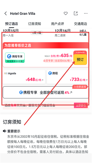 2、进入酒店列表页后,选择目标酒店比如【Hotel-Gran-Villa】,就能进入该酒店的详情页面哦。