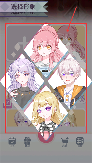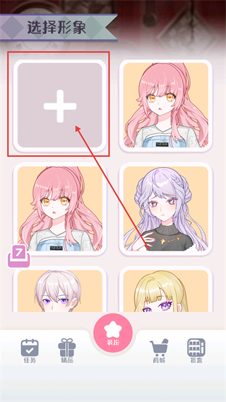 1、在选择形象页面,点击带【+】的空位,就能打开形象选择的候选列表啦。