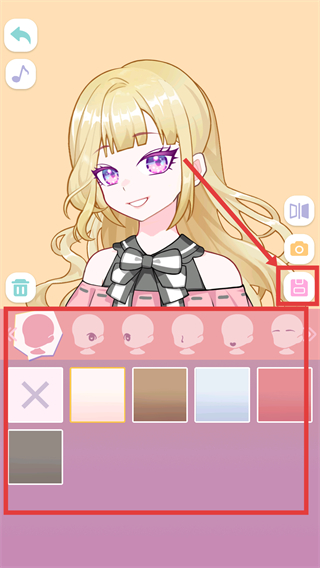 3、在编辑界面,可调整形象的头部样式、肤色等参数,还能使用右侧功能按钮辅助编辑哦。