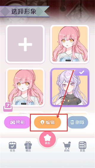 2、选中形象后,点击下方的【编辑】按钮,可进入形象的编辑界面,调整其外观细节哦。