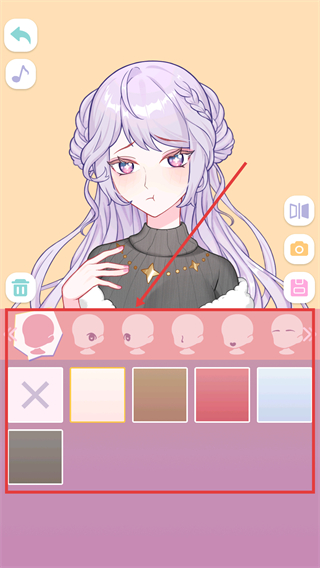 3、在形象编辑页面,可通过底部的选项栏,选择不同的脸型、肤色等元素,自定义形象的外观呀。