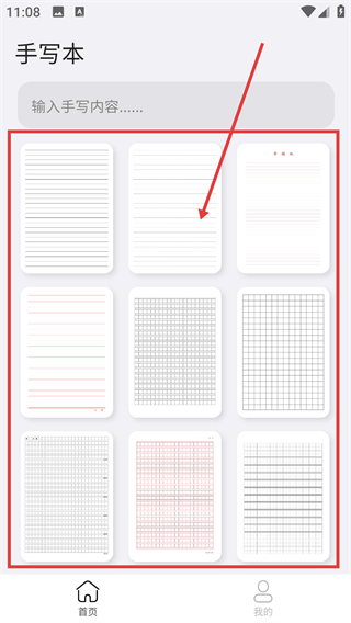 1、在应用的首页,选择心仪的纸张样式,就能进入对应样式的编辑页面,开始编辑内容啦。