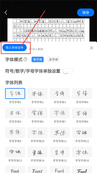 3、在字体设置界面,点击【导入字体文件】按钮,就能添加自定义字体,丰富文字的展示效果啦。