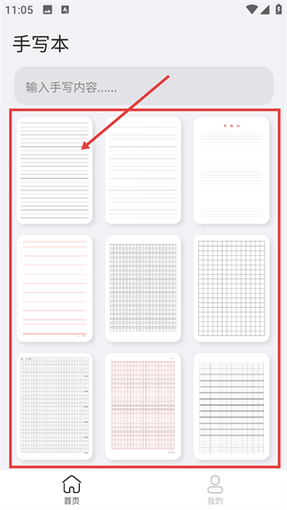 1、在软件首页选喜欢的纸张样式,就能进入编辑界面,后续可输入内容模拟手写啦。