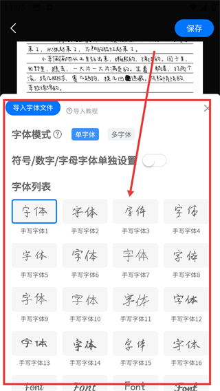 3、在字体设置页,可选【手写字体1】这类样式,应用后就能让文字呈现对应手写效果啦。