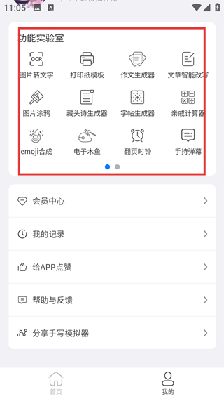 4、点底部【我的】选项,进入个人页后能看到功能实验室,像【图片转文字】这类工具都能用哦。