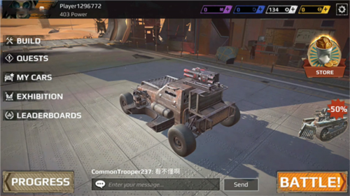 1、创世战车游戏里一开始我们会有一辆车,它可以通过我们的努力来改造,使它更强大。