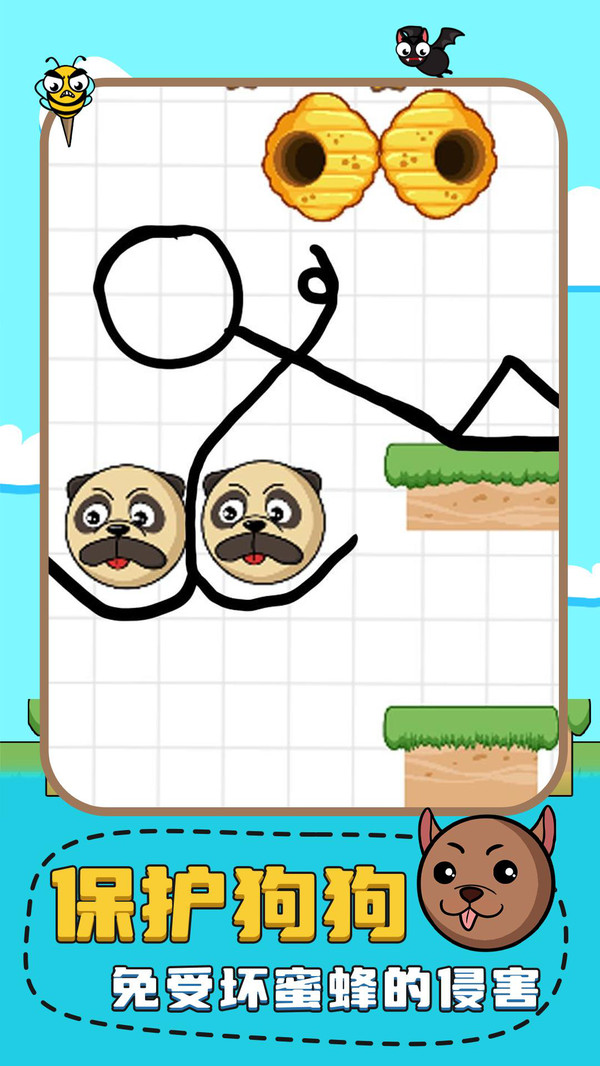 《拯救狗子》是一款好玩的画线闯关游戏,这款游戏内玩家会在关卡里画线来完成挑战,而且游戏玩法很丰富,每个关卡都有不同内容,你要画出不同线条才行。玩家要开动自己脑筋来想方法,游戏没有任何限制,你可以在里面尽情画线。玩家也要将狗子救出来,这样就完成挑战了。