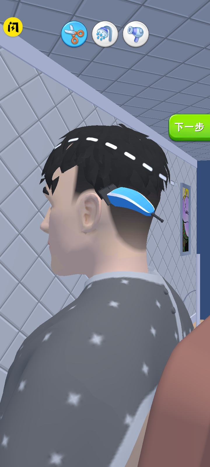 2、这里为各种客人洗头和理发,学习很多理发的基础知识,只有达到满意才能过关。