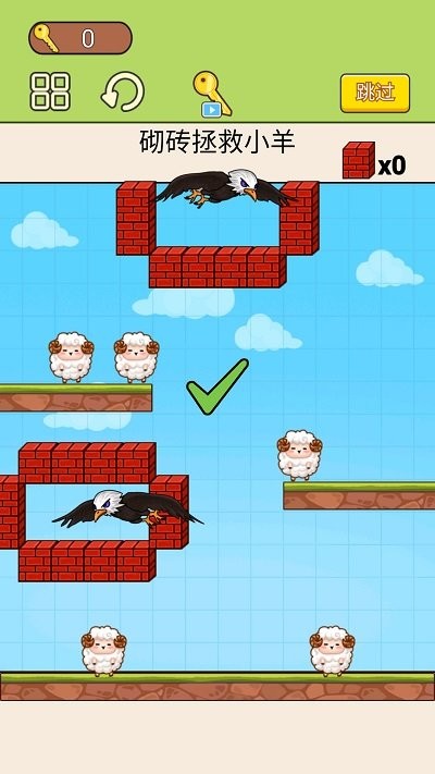 1、游戏也很简单,就是在玩的时候用木桩围住羊或鹰,卡通风格的游戏画面给人带来更多的享受体验。