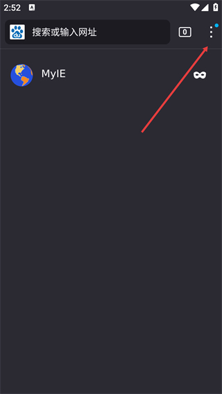 1、浏览器主界面找到【搜索或输入网址】栏右侧三点菜单按钮,点击该按钮可展开功能选项列表。
