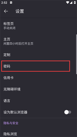 3、设置页面找到【密码】选项,点击进入密码专属设置页。