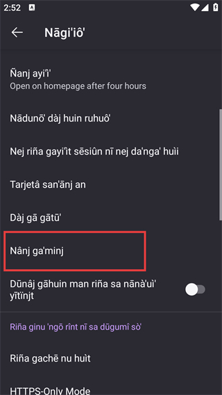 3、点击红框标注的【Nānjga'minj】选项,进入语言专属设置页面。
