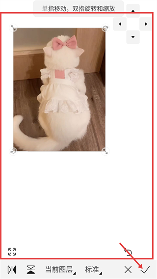 4、导入图片后可单指移动、双指调整,确认效果后点击对勾按钮,就能完成图片的添加啦。