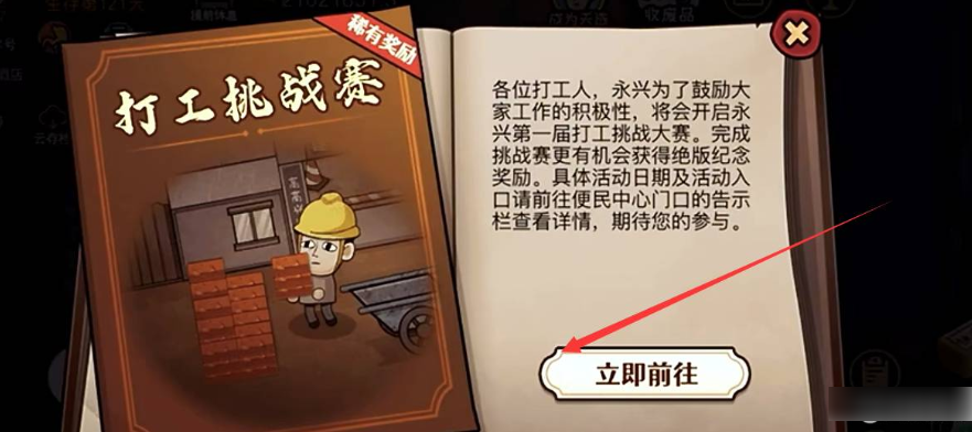 1、首先我们登录游戏,点击进入打工挑战赛,选择“立即前往”,参与挑战就有机会获得绝版纪念币。