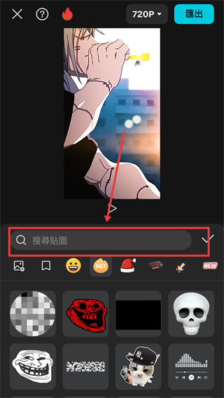 1、在CapCut编辑页,点底部【貼圖】选项能打开贴图库,后续可给视频添加装饰性贴图元素哦。