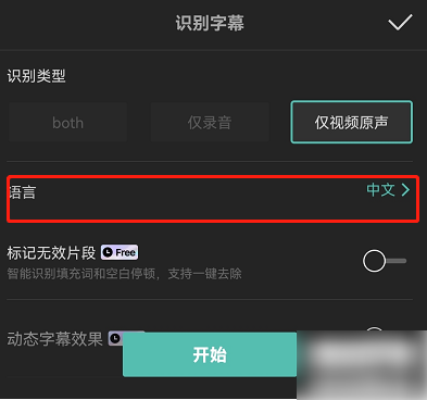3.接着选择主要识别的语言,原视频是什么语言就选什么,选好后点击【开始】,识别的时候就那样放着,不要切换后台,防止识别失败,字幕识别完成后,会在视频片段的下方出现对应的字幕,然后进行保存即可。