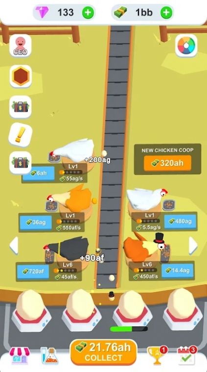 2、这款游戏的玩法应该比较容易上手,你可以在合并鸡蛋工厂感受不一样的趣味。